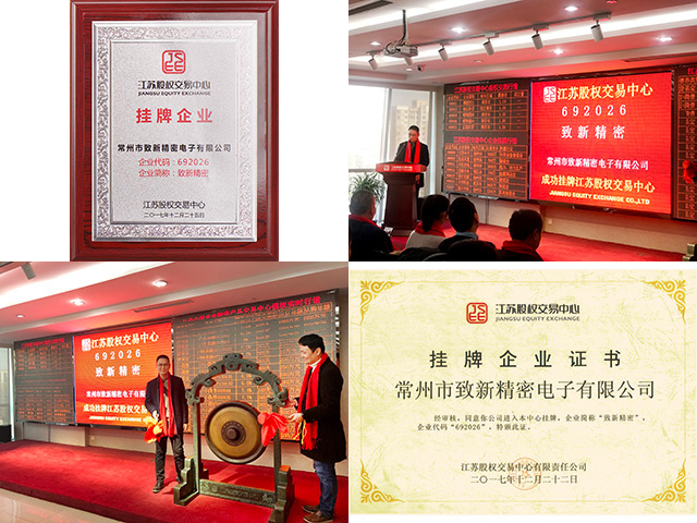 2018年1月11日下午,江蘇股權(quán)交易中心企業(yè)集中掛牌儀式隆重舉行。本次掛牌的共有38家企業(yè),其中常州市致新精密電子有限公司(以下簡稱“致新精密”)成功掛牌成長板。掛牌儀式的成功舉行,要感謝江蘇股權(quán)交易中心對我司各方面實力的審計與認(rèn)可。