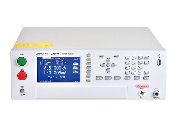 ZX9501絕緣耐壓測(cè)試儀可廣泛應(yīng)用于電子元器件、家用電器、變壓器、儀器儀表、照明電器、電動(dòng)工具、電熱器計(jì)算機(jī)、信息類整機(jī)的安規(guī)綜合測(cè)試儀。該系列儀器配備PLC接口、RS232C、USBHOST、并可選配RS485接口、GBIP接口,可方便地與PC進(jìn)行數(shù)據(jù)通訊和遠(yuǎn)程控制,以組建自動(dòng)測(cè)試系統(tǒng)。
