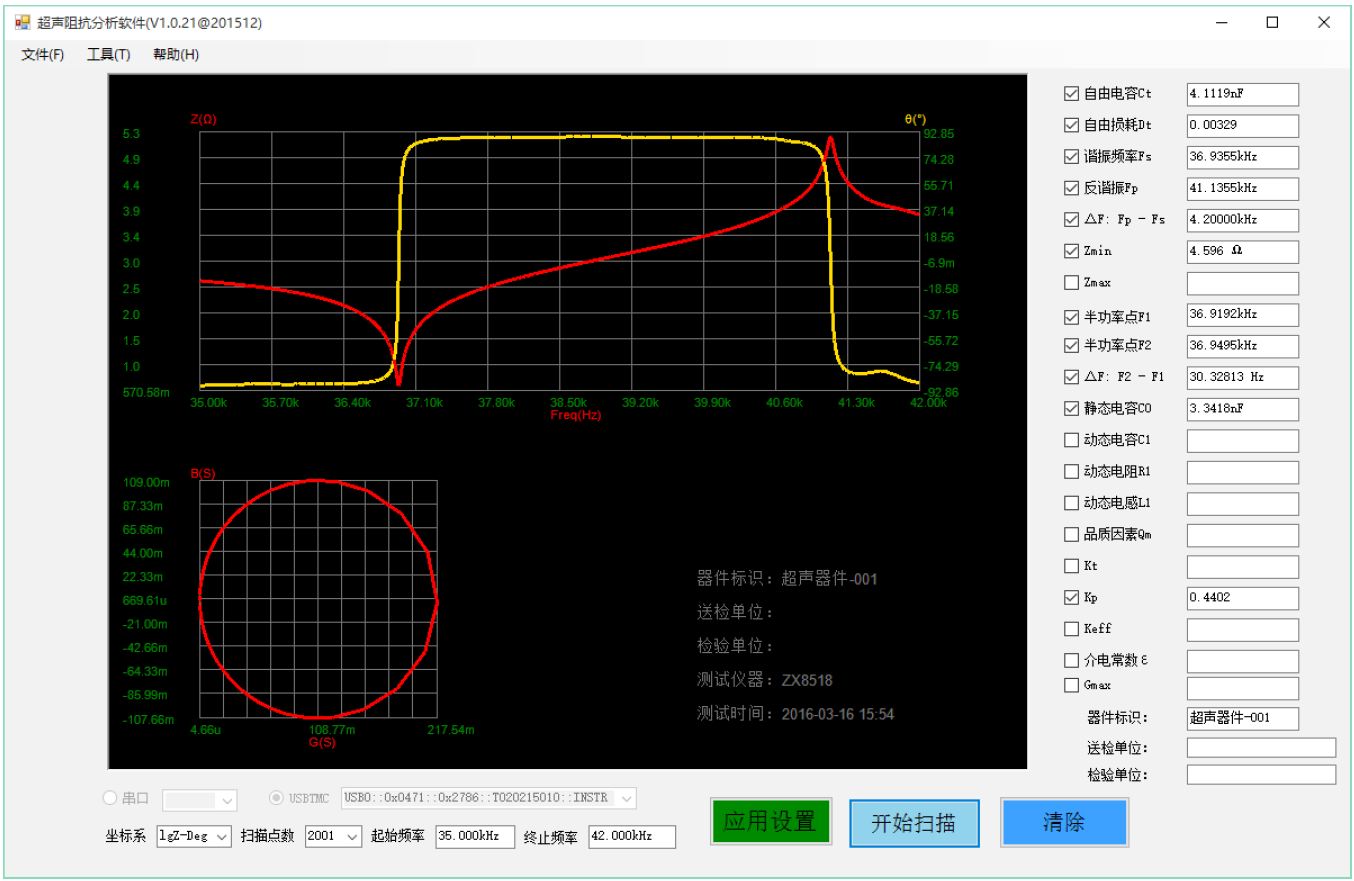 ZX70A/80A阻抗分析儀可以測(cè)量和評(píng)定壓電陶瓷片、壓電換能器、蜂鳴片等各種器件、設(shè)備的參數(shù)和性能優(yōu)劣。通過(guò)阻抗-相位-頻率曲線圖和導(dǎo)納圓進(jìn)行判斷,一目了然。